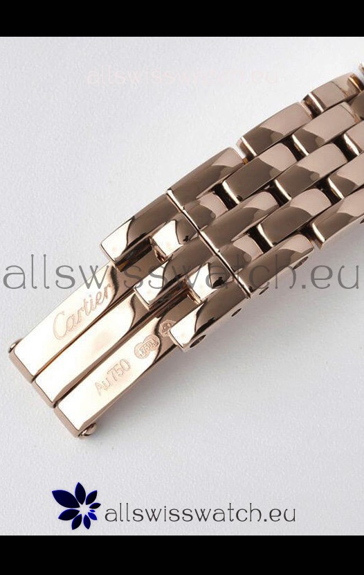 Rose Gold Plating on 904L Stainless Strap with Cartier Markings/Engravings and Double Folding Clasp Plated in Stainless Steel