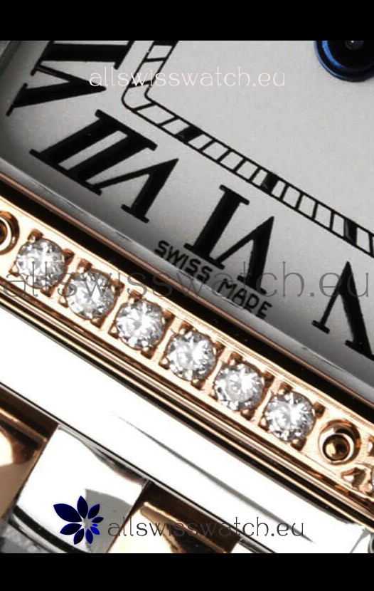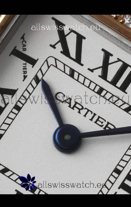 White Dial with Diamonds Bezel. Signature Cartier Engravings at 10 O'Clock Marker