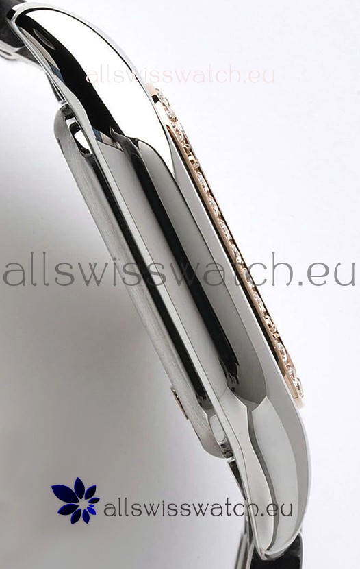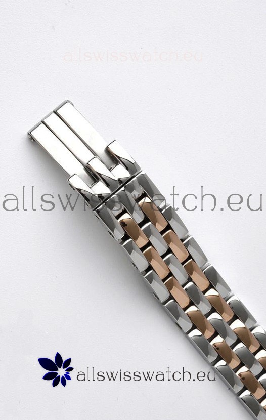 Rose Gold Two Tone Plating on 904L Stainless Strap with Cartier Markings/Engravings and Double Folding Clasp Plated in Stainless Steel