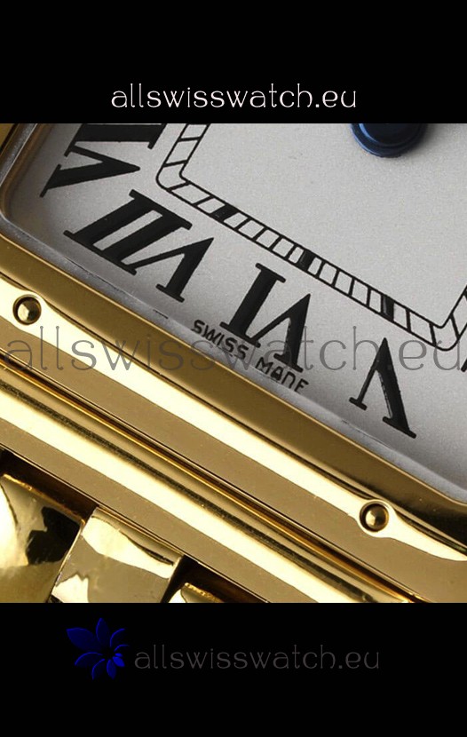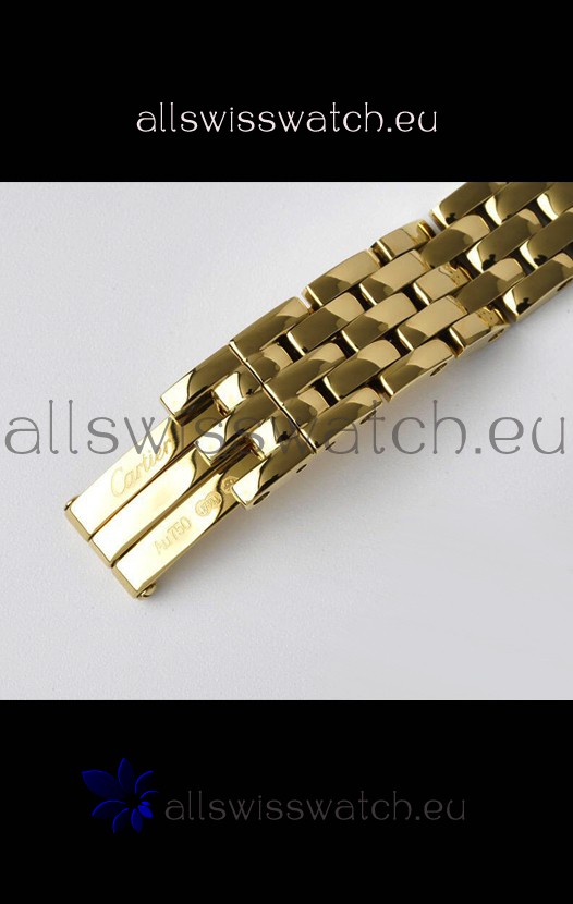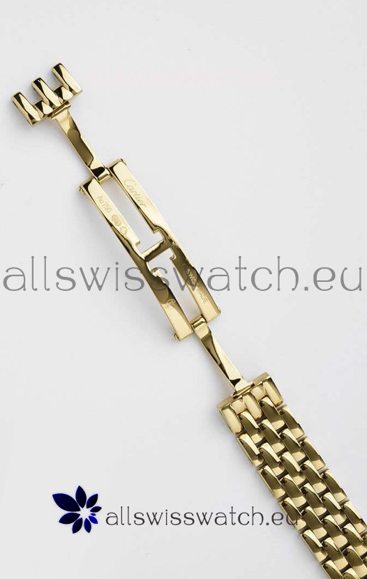 Yellow Gold Plating on 904L Stainless Strap with Cartier Markings/Engravings and Double Folding Clasp Plated in Stainless Steel