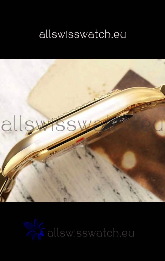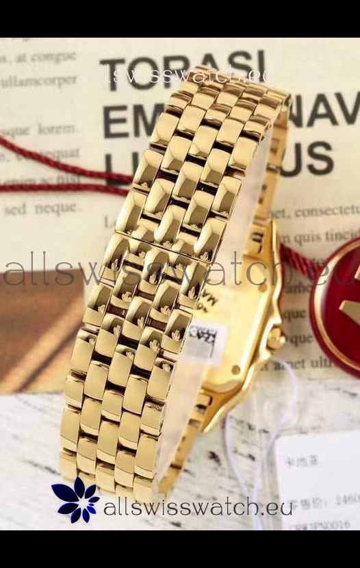 Yellow Gold Plating on 904L Stainless Strap with Cartier Markings/Engravings and Double Folding Clasp Plated in Stainless Steel