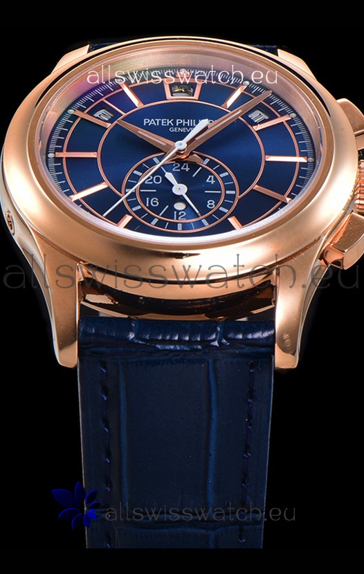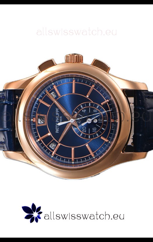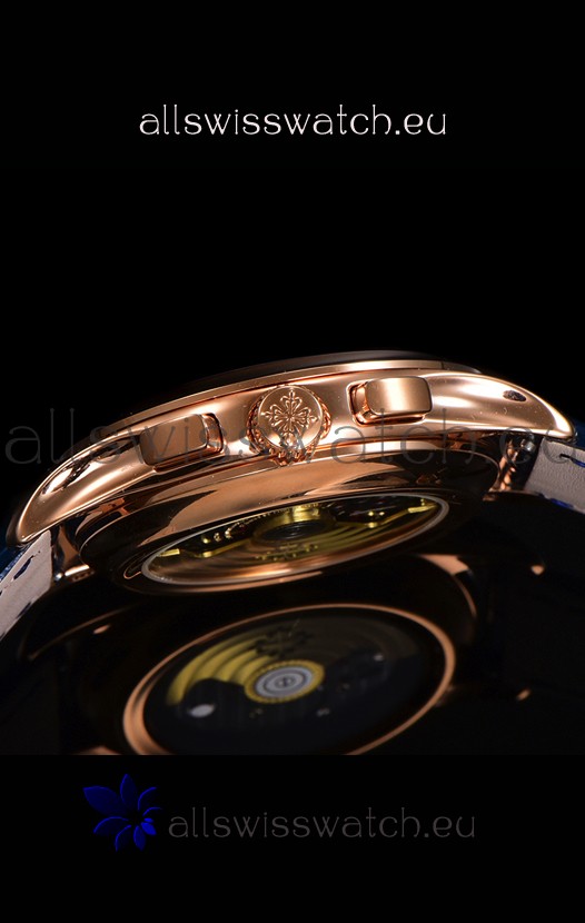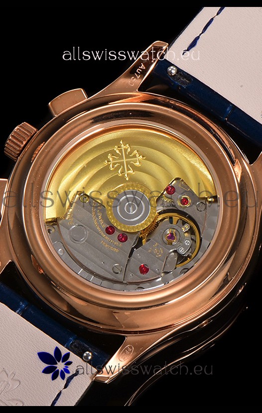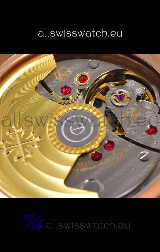 18K Rose Gold Plating on 904L Stainless Steel Case complete with Patek Philippe Markings and Engravings.