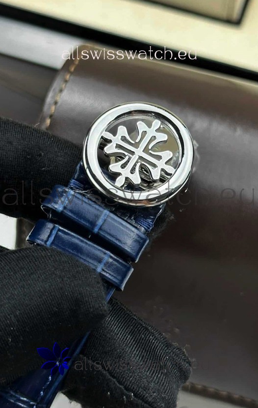 Genuine Leather Strap with Steel Folding Clasp complete with Patek Philippe Markings.