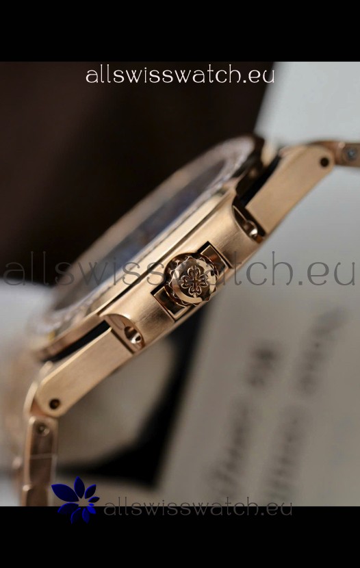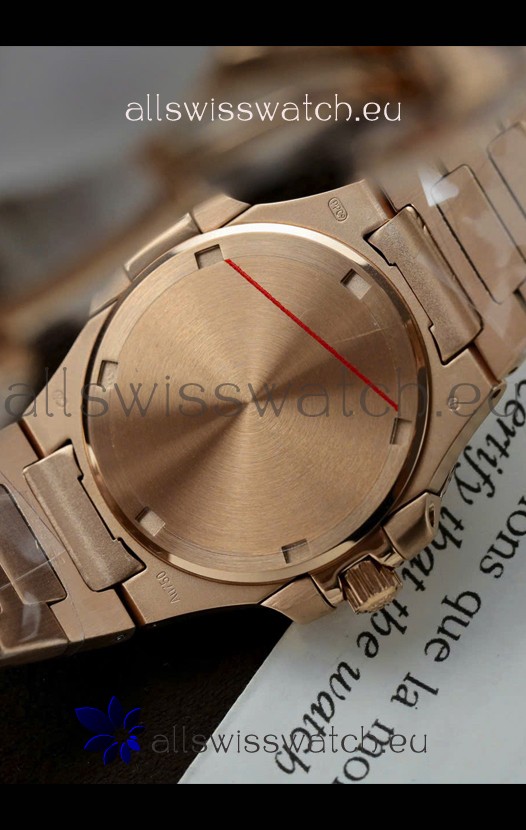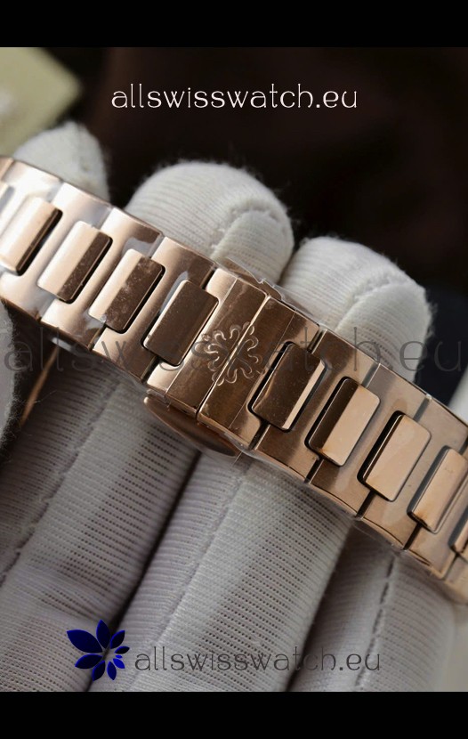 18K Rose Gold Plating on 904L Stainless Steel Strap with Steel Folding Clasp complete with Patek Philippe Markings.