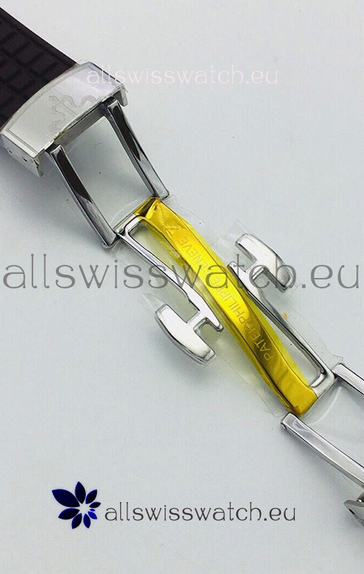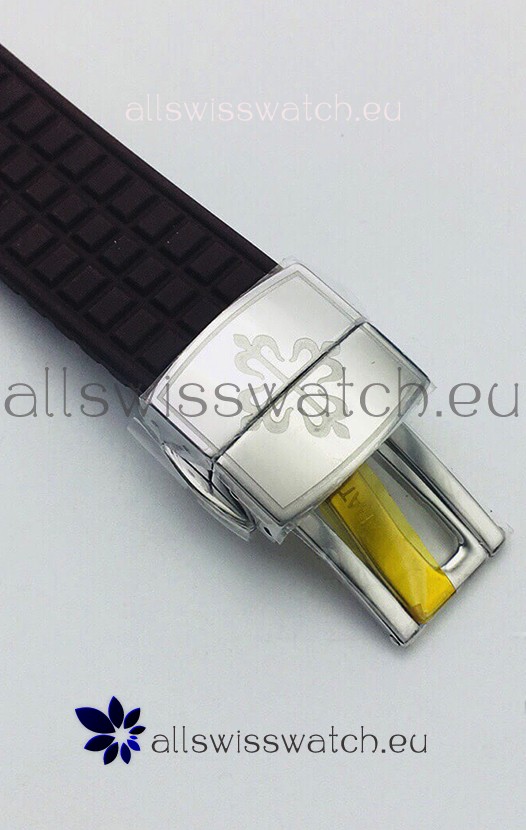 Brown Rubber Strap with Steel Folding Clasps complete with Patek Philippe Markings.