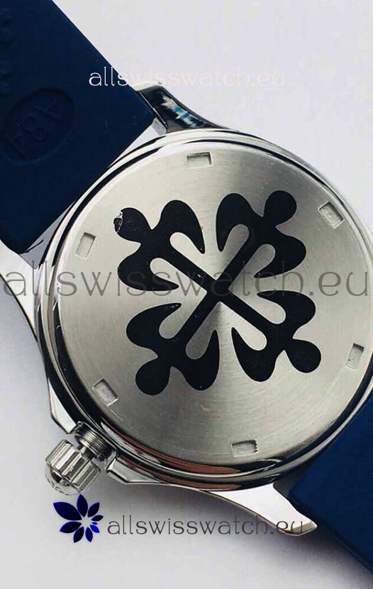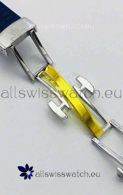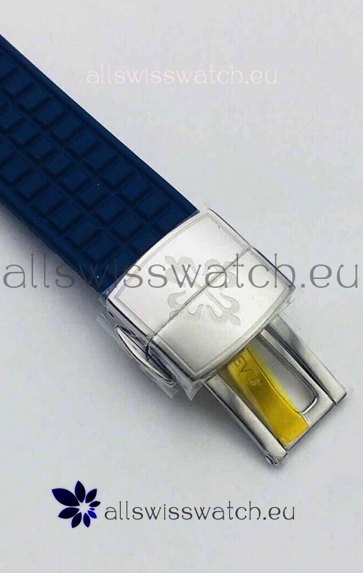 Blue Rubber Strap with Steel Folding Clasps complete with Patek Philippe Markings.