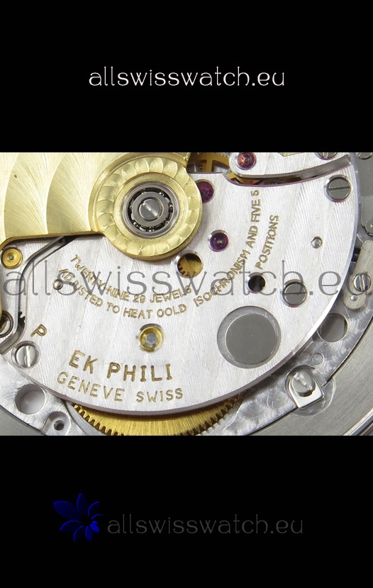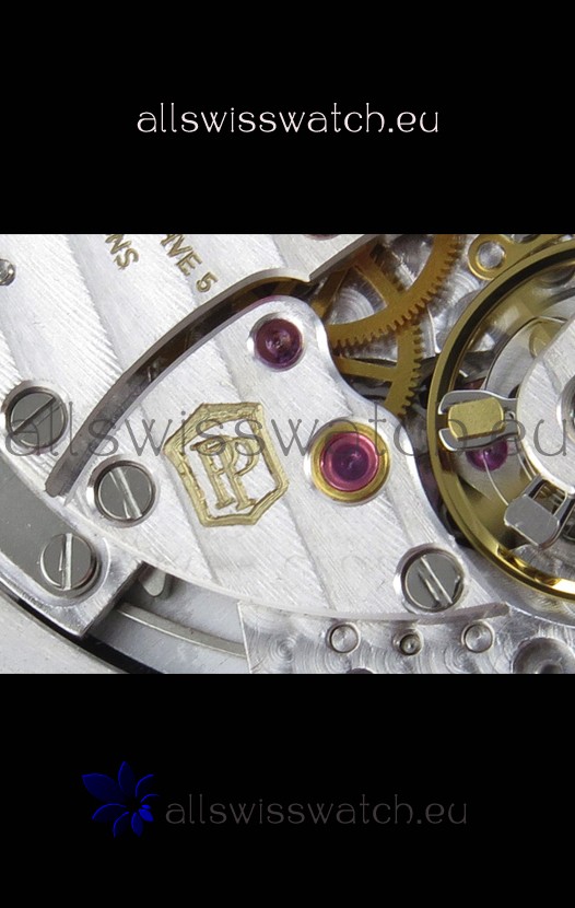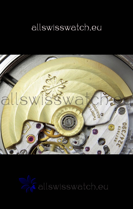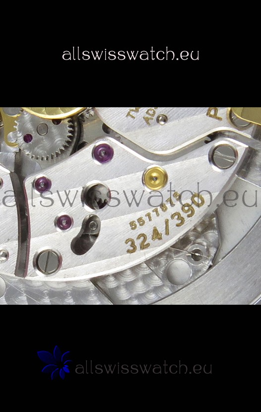 Genuine Swiss 9015 Movement assembled to Resemble the Authentic Patek Philippe PP 324 CS Calibre Style Movement. Updated Rotor, Bridged and Engravings on Movement.