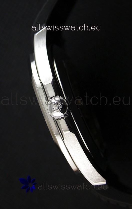 Genuine Swiss 9015 Movement assembled to Resemble the Authentic Patek Philippe PP 324 CS Calibre Style Movement. Updated Rotor, Bridged and Engravings on Movement.