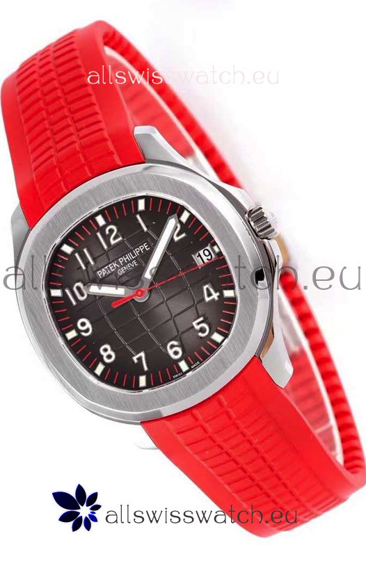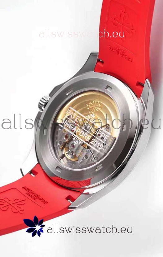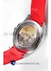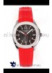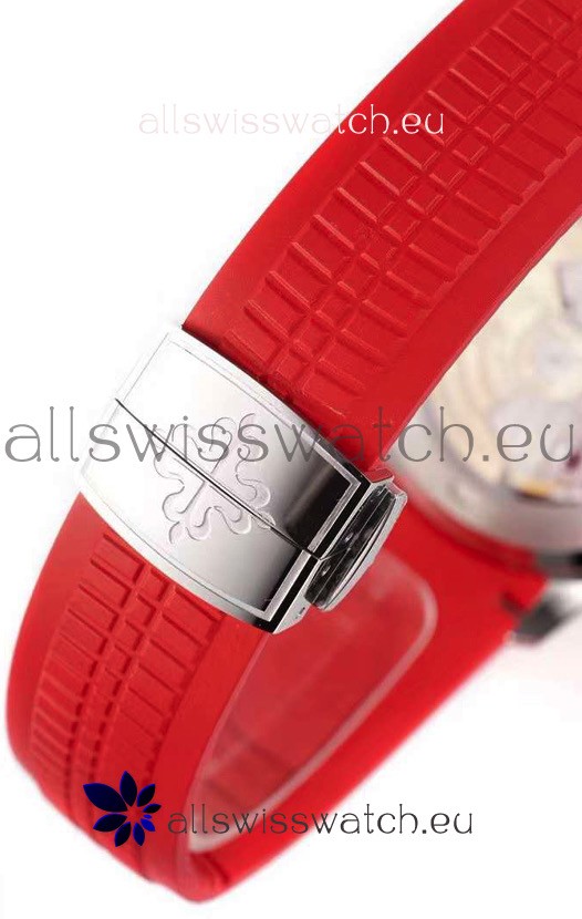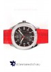 Red New Style Curved Rubber Strap with Steel Folding Clasp complete with Patek Philippe Markings.