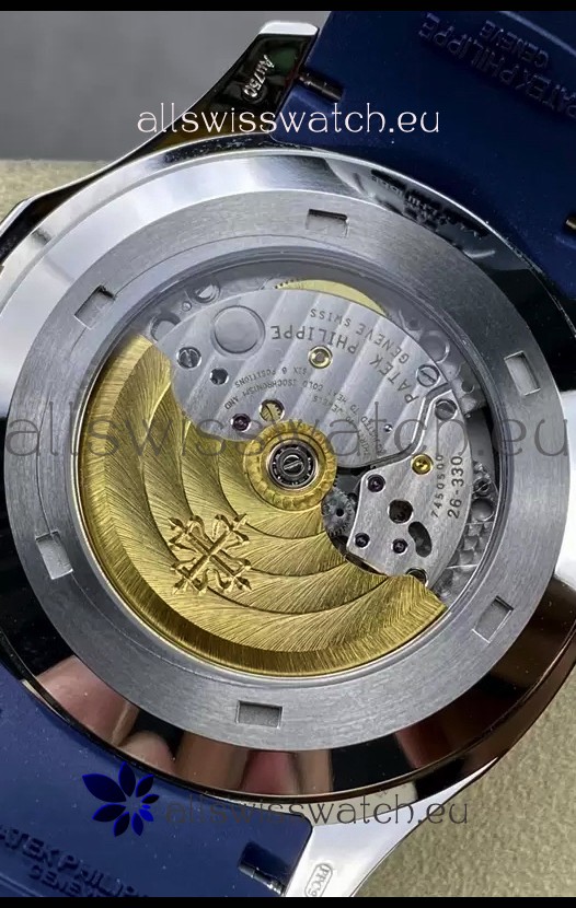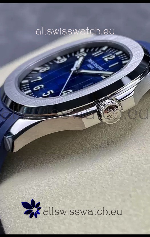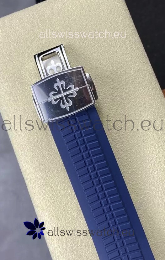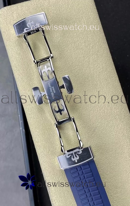 Blue Curved Rubber Strap with Steel Folding Clasp complete with Patek Philippe Markings. A Highly Updated Clasps for this series with much more accurate markings/engravings.