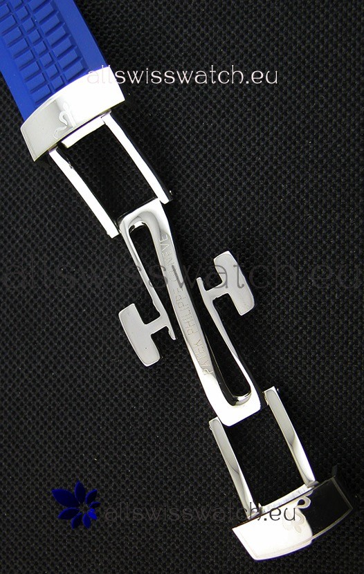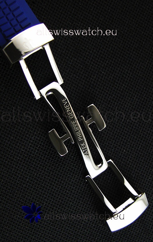 Blue New Style Curved Rubber Strap with Steel Folding Clasp complete with Patek Philippe Markings.