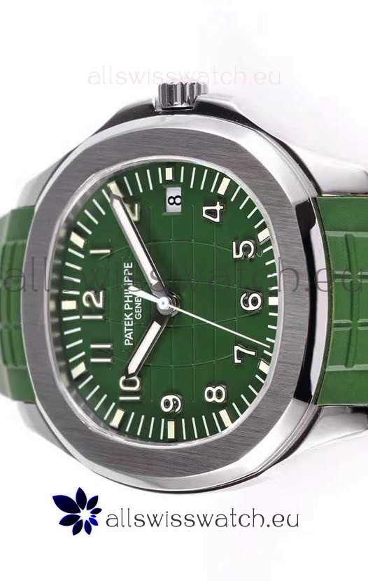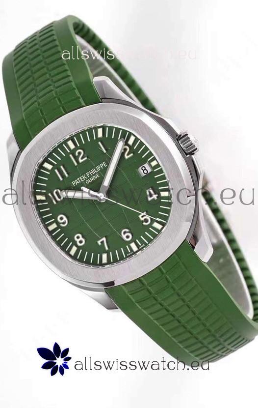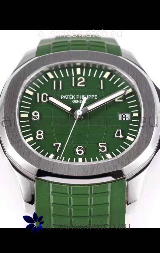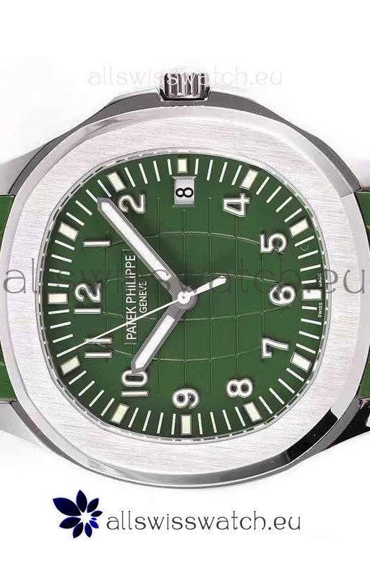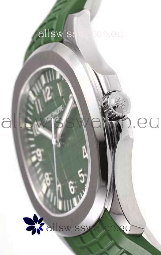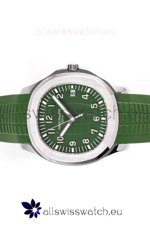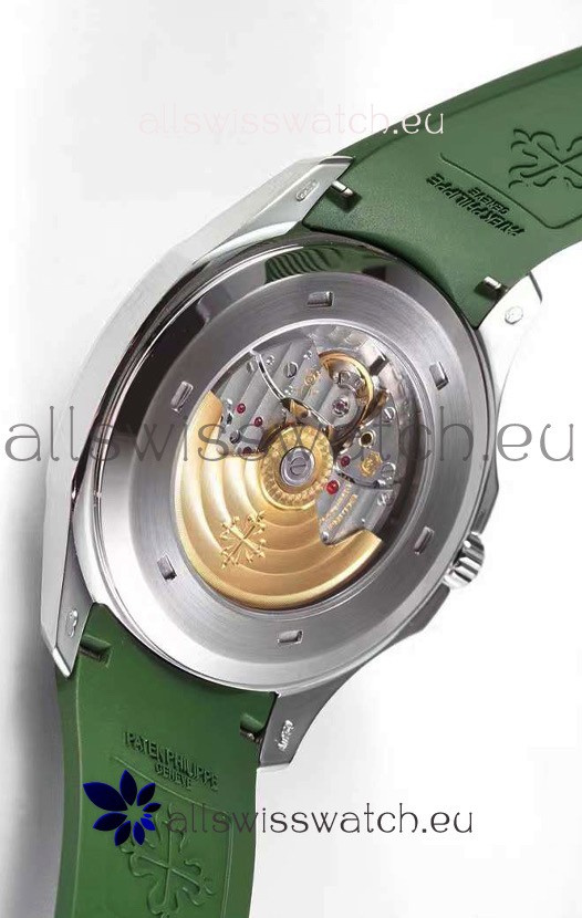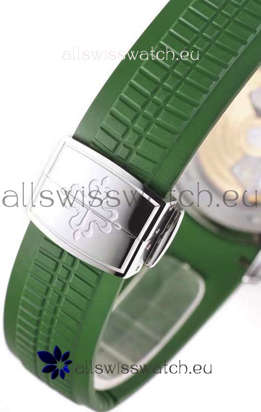 Green New Style Curved Rubber Strap with Steel Folding Clasp complete with Patek Philippe Markings.