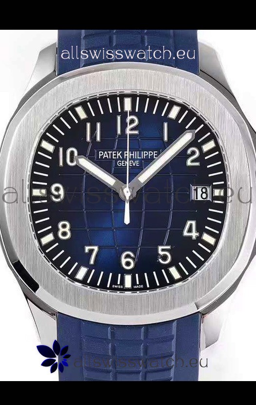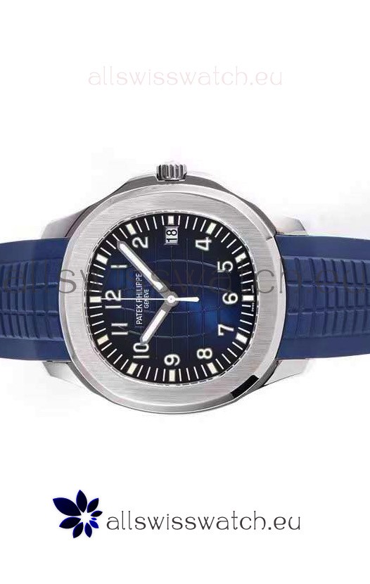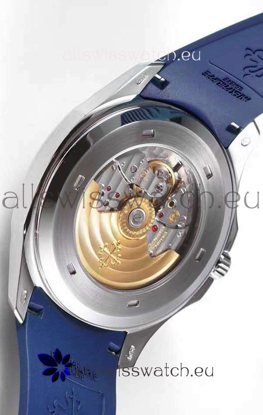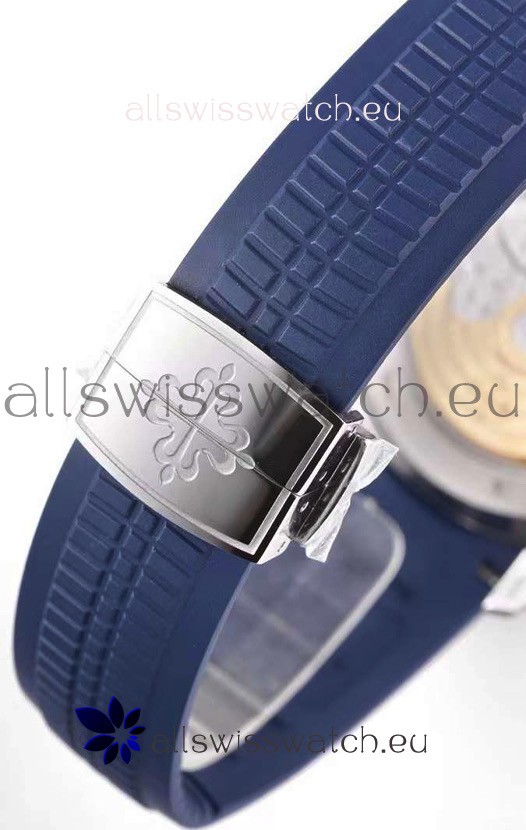 Blue New Style Curved Rubber Strap with Steel Folding Clasp complete with Patek Philippe Markings.
