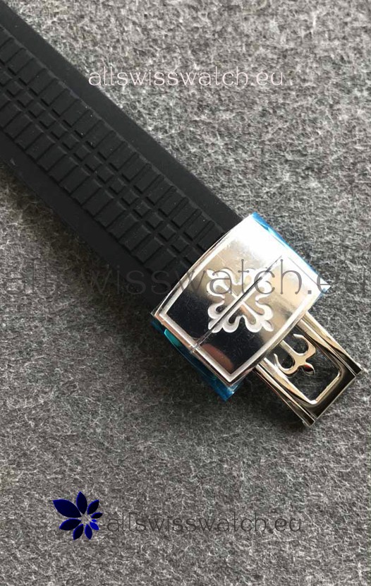 Genuine Rubber Strap complete with Patek Philippe Markings and Engravings complete with Patek Philippe Signature Folding Clasps as per the genuine
