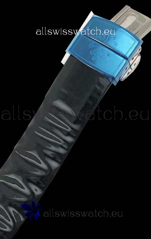 Genuine Black Rubber Strap complete with Patek Philippe Markings and Engravings complete with Patek Philippe Signature Folding Clasps as per the genuine