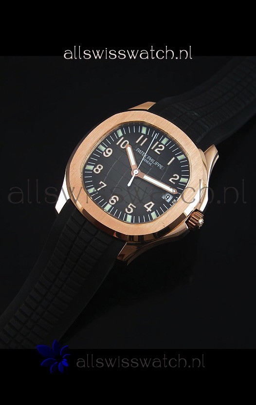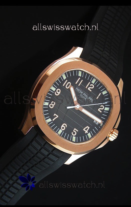 Patek Philippe Aquanaut Jumbo Rose Gold 1:1 Mirror Replica Watch - Black Colored Dial