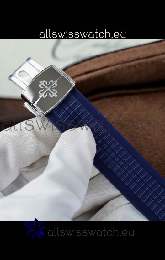 Genuine Rubber Strap complete with Patek Philippe Markings and Engravings complete with Patek Philippe Signature Folding Clasps as per the genuine