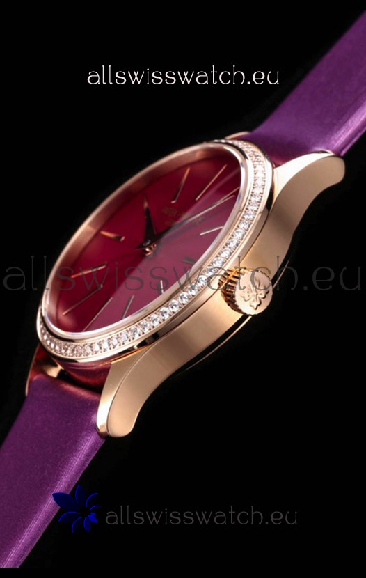 18K Rose Gold Plating on 904L Stainless Steel Case with High Quality Cut Diamonds Bezel