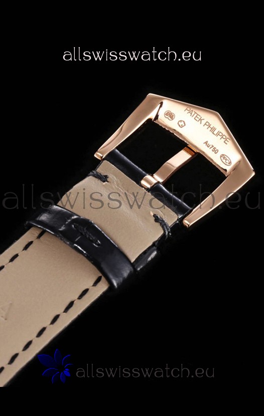Genuine Leather Strap Tang Buckle complete with Patek Philippe Markings and Engravings