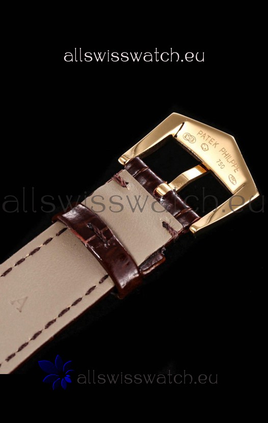 Genuine Leather Strap Tang Buckle complete with Patek Philippe Markings and Engravings