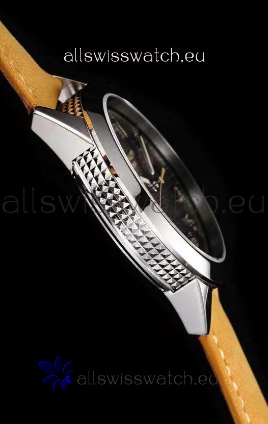Vintage Styled Charcoal Grey Dial with Date Window at 3 O'Clock.