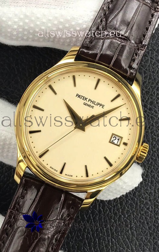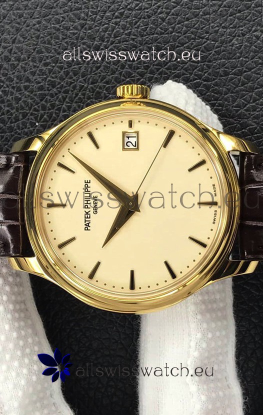 Patek Philippe Calatrava 5227J-001 Pale Yellow Dial 1:1 Mirror Swiss Replica Yellow Gold Casing