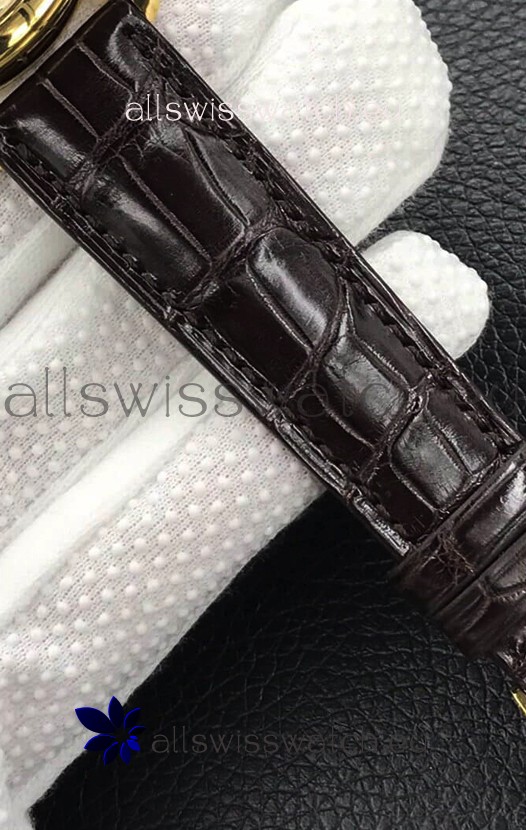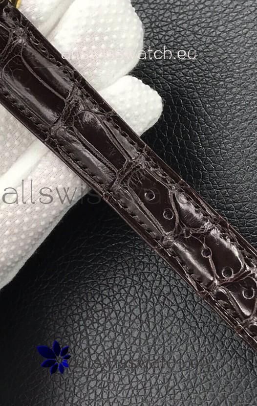 Genuine Leather Strap with Rose Gold Plated Steel Tang Buckle complete with Patek Philippe Markings/Engravings