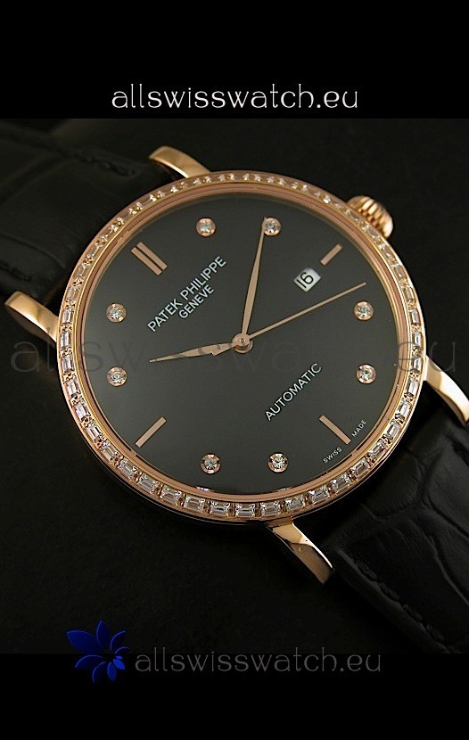 You're reviewing: Patek Philippe Calatrava 5298 Swiss Replica Watch in Pink Gold Casing - Diamonds Hours