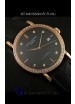 18K Pink Gold Plated Casing on Stainless Steel Case with Swiss Baguatte Cut Diamonds Bezel