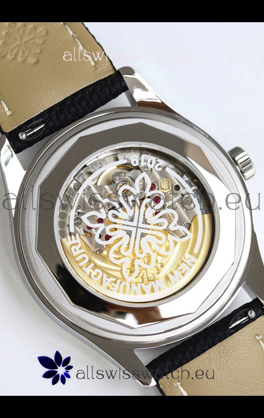 Genuine Swiss 9015 Movement assembled to Resemble the Authentic Patek Philippe PP 324 CS Calibre Style Movement. Updated Rotor, Bridged and Engravings on Movement.
