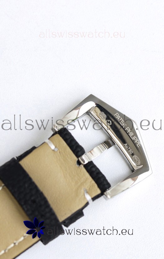 Genuine Canvas/Leather Hybrid Strap with Tang Buckle complete with Patek Philippe Markings and Engravings