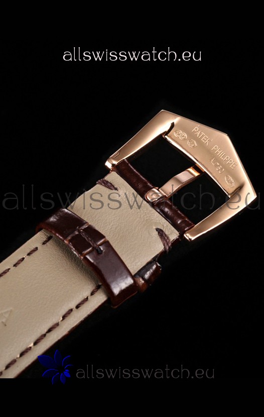 Genuine Leather Strap Tang Buckle complete with Patek Philippe Markings and Engravings