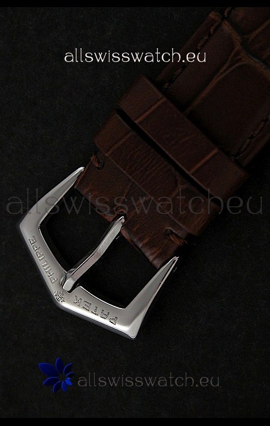 Strap: Genuine Brown Leather Strap with Patek Philippe Markings