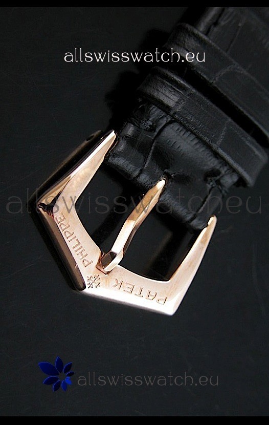 Strap: Genuine Black Leather Strap with Patek Philippe Markings