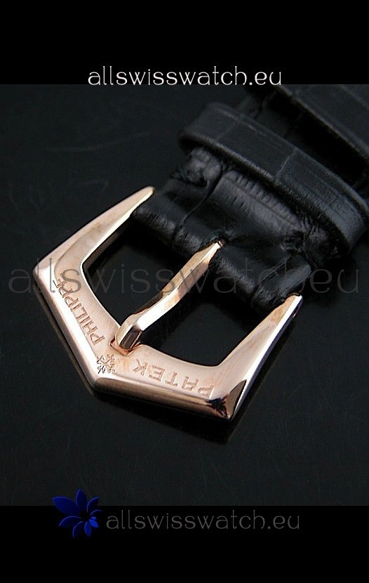 Strap: Genuine Black Leather Strap with Patek Philippe Markings