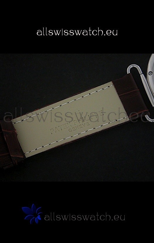 Strap: Genuine Brown Leather Strap with Patek Philippe Markings