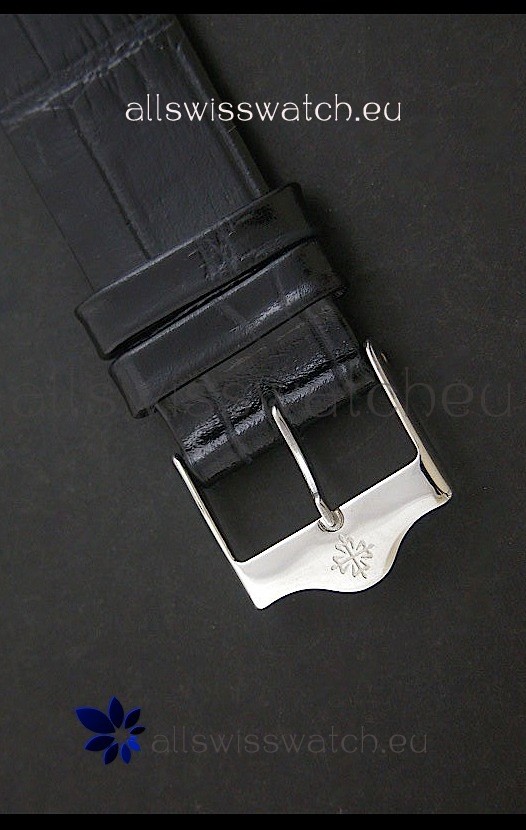 Strap: Genuine Black Leather Strap with Patek Philippe Markings