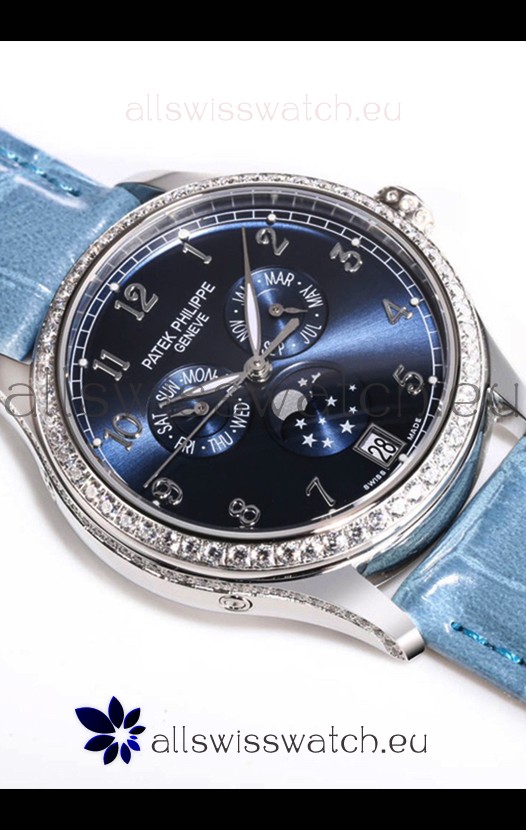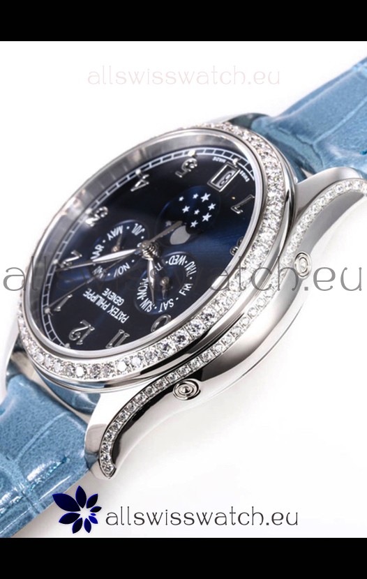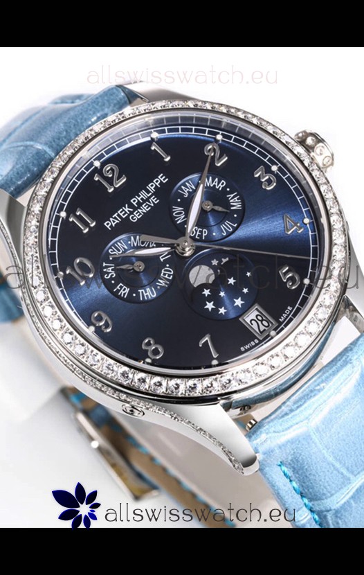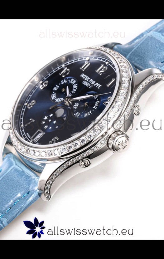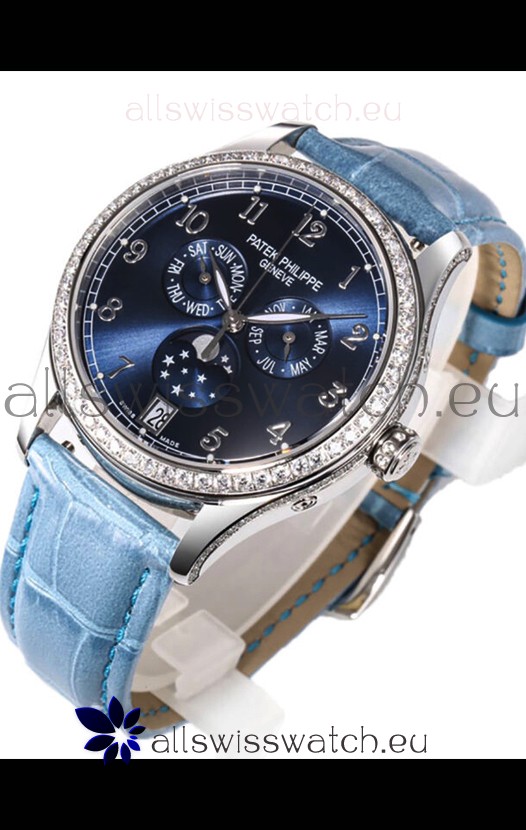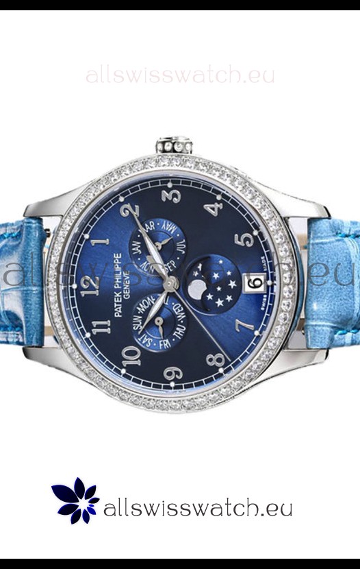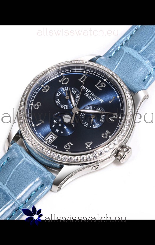 Patek Philippe Complications 4948G Annual Calendar Moonphase Blue Dial White Gold Swiss Replica
