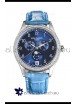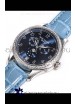Blue Dial with 3 Indicators for Month, Day, Moonphase Indicator (Moonphase functions as Day/Night Feature) and Date Indicator