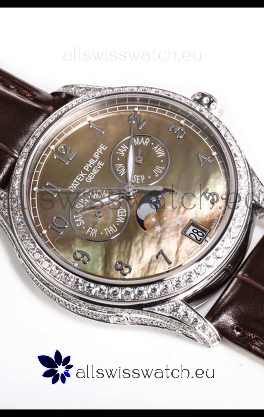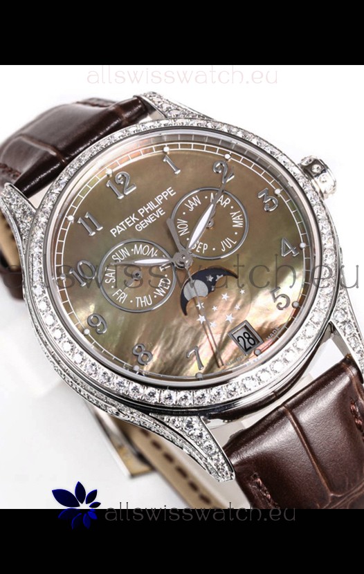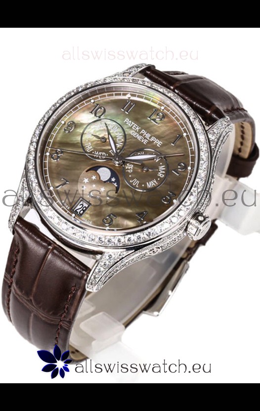 Patek Philippe Complications 4948G Annual Calendar Moonphase Pearl Dial White Gold Swiss Replica