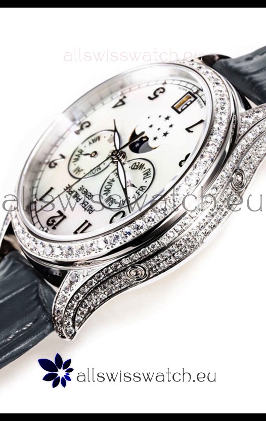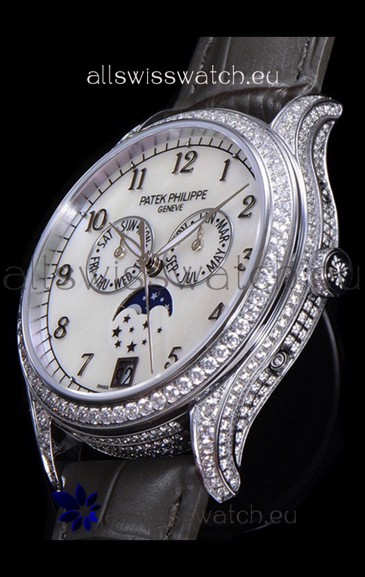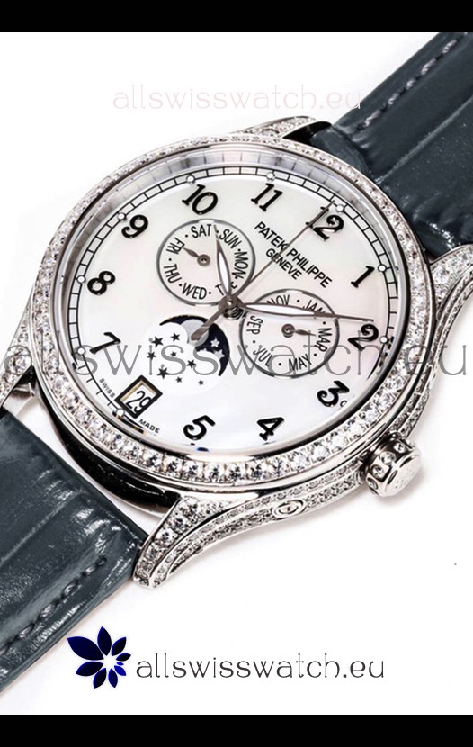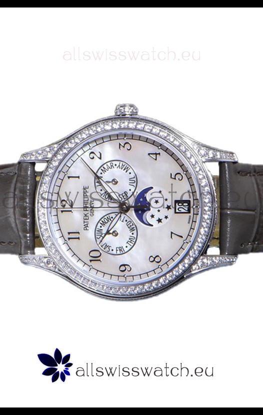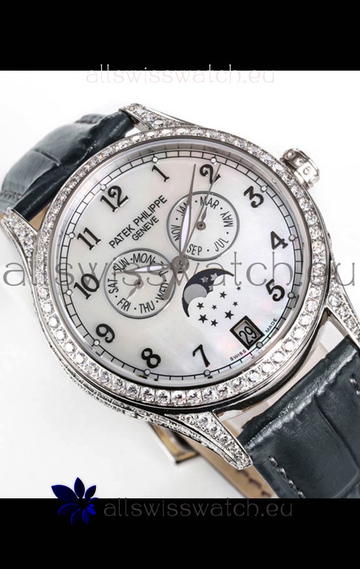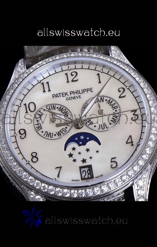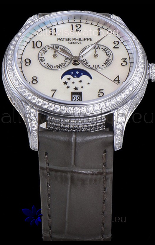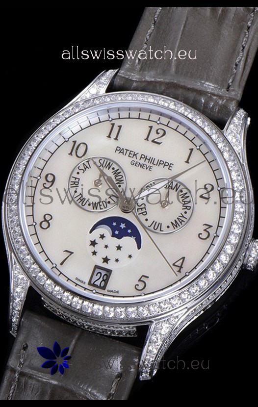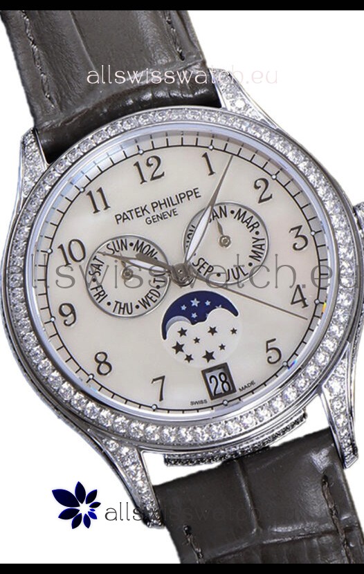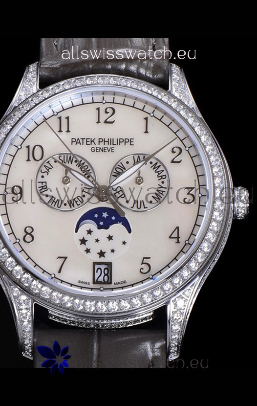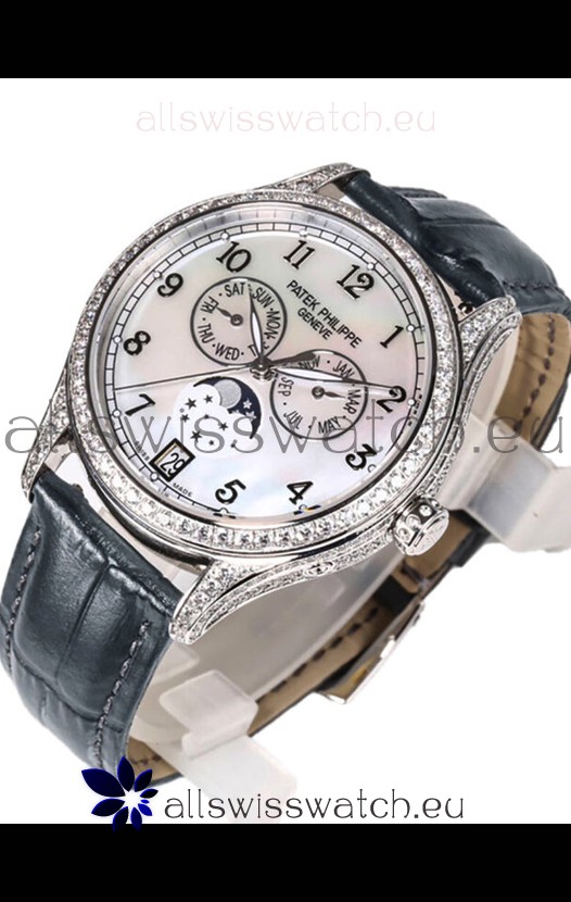 Patek Philippe Complications 4948G Annual Calendar Moonphase Pearl Dial White Gold Swiss Replica
