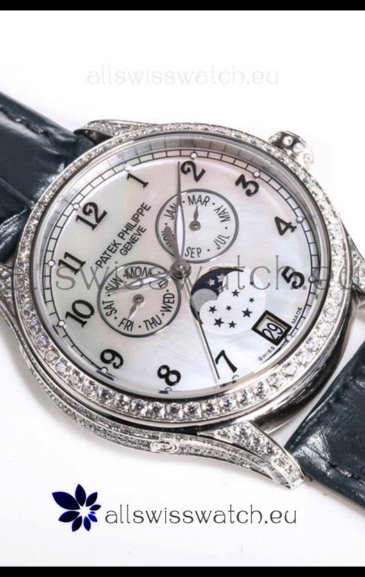 You're reviewing: Patek Philippe Complications 4948G Annual Calendar Moonphase Pearl Dial White Gold Swiss Replica