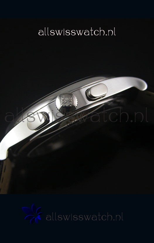 Genuine Leather Strap with Stainless Steel Tang Buckle with Patek Philippe Markings.