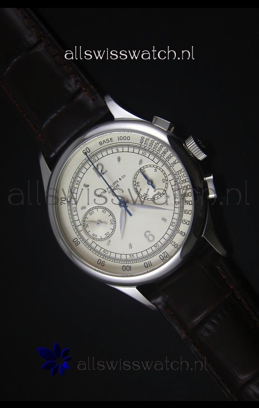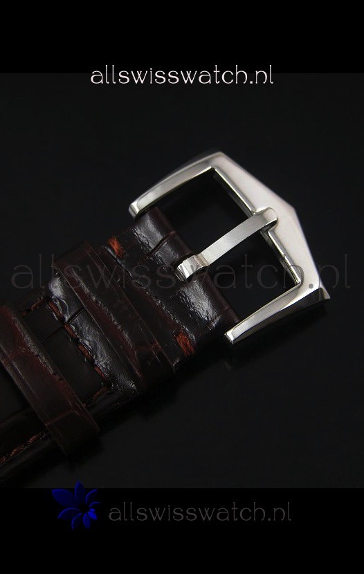 Genuine Leather Strap with Stainless Steel Tang Buckle with Patek Philippe Markings.