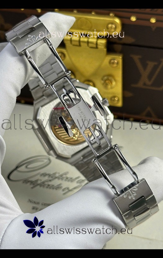 904L Solid Stainless Steel Strap linked with Screws with Folding Patek Philippe Clasp.