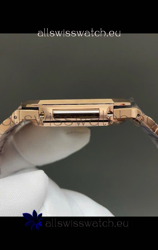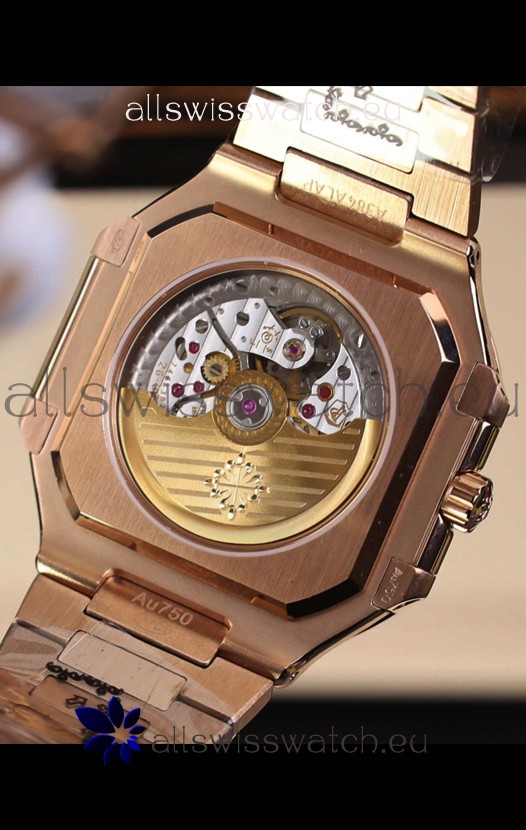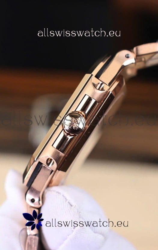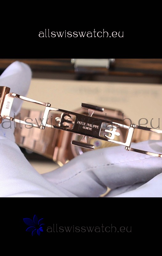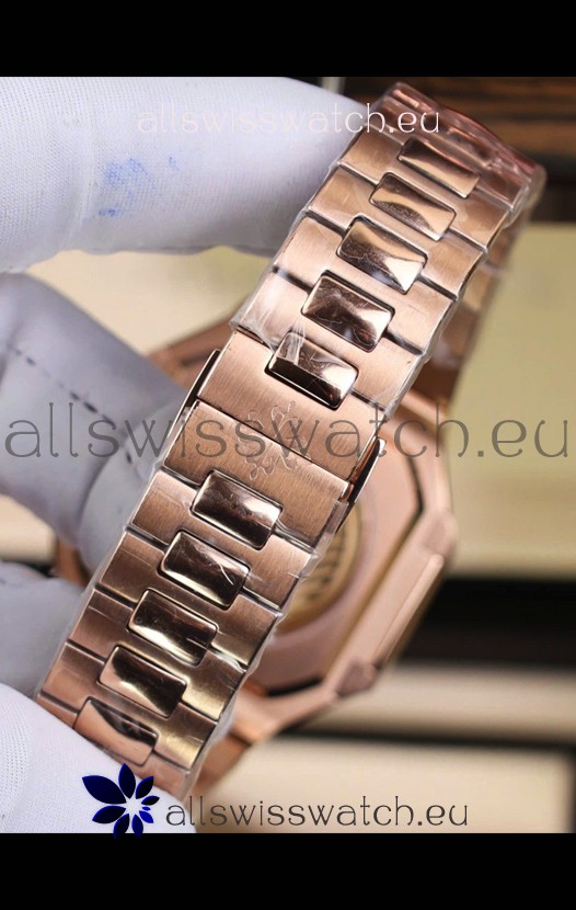 18K Rose Gold Plating on 904L Solid Stainless Steel Strap linked with Screws with Folding Patek Philippe Clasp.
