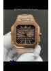 18K Rose Gold Plating on 904L Solid Stainless Steel Case with Open Case Back Cover in Steel. Polished Bezel Borders