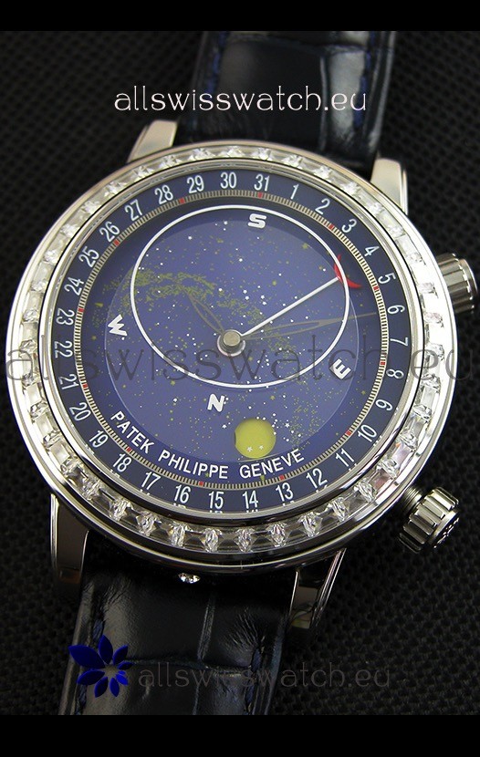 Top Grade Patek Philippe Grand Complication 6102P Celestial Moon Age Blue Dial Swiss Replica Watch with Free Shipping and 1 year warranty