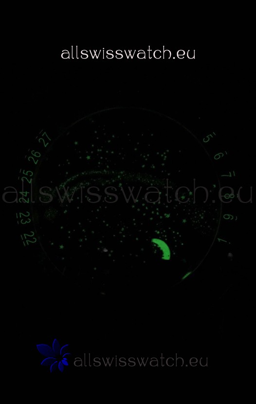 Blue Sky Moon Celestial Dial with Date Numerals around the Dial. Sapphires Bezel