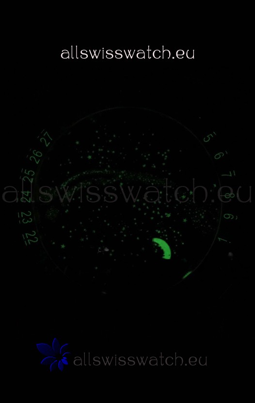 Blue Sky Moon Celestial Dial with Date Numerals around the Dial. Sapphires Bezel